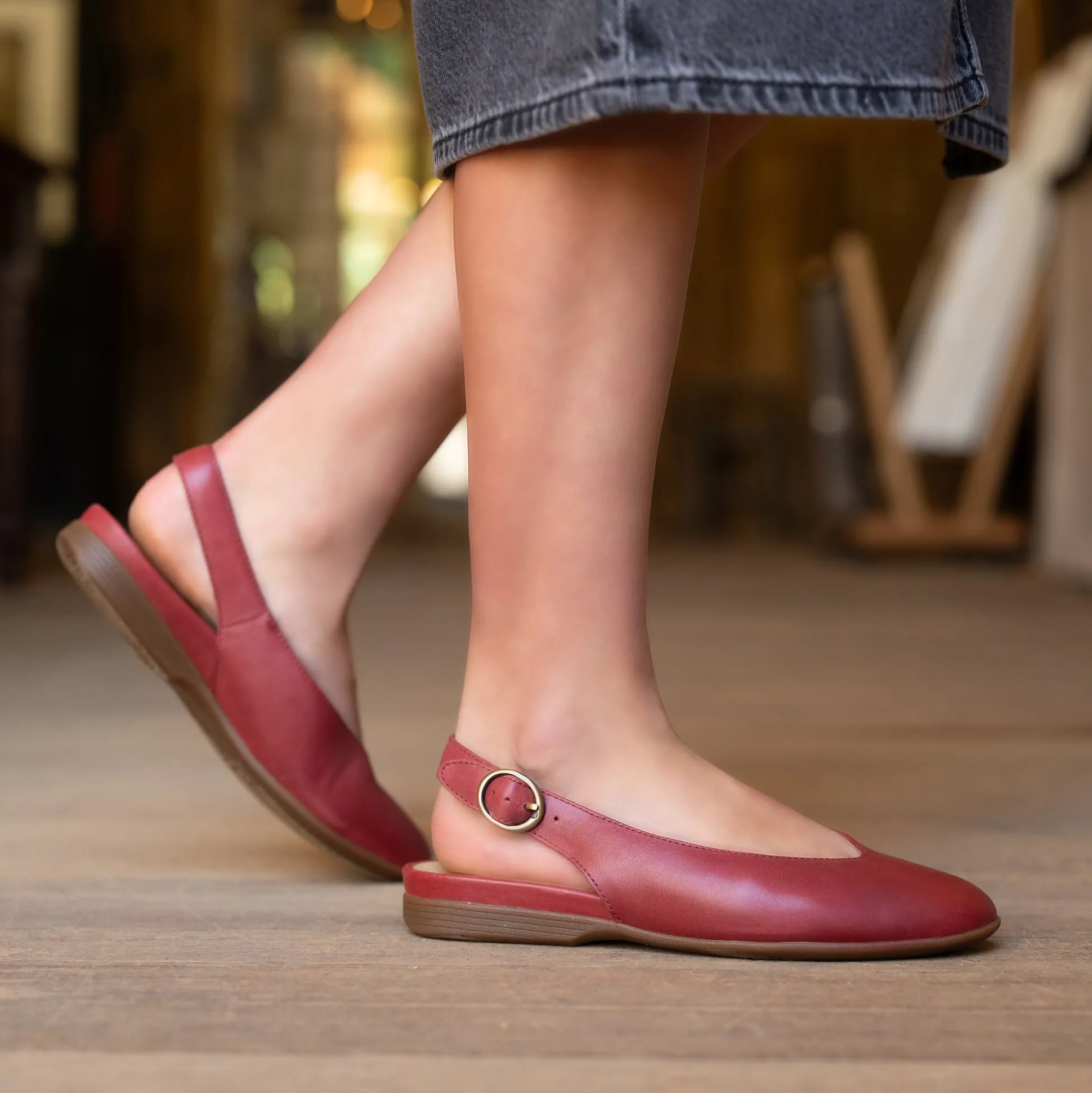 The style possibilities are as endless as the comfort with Lea, a sleek closed toe sling-back flat.