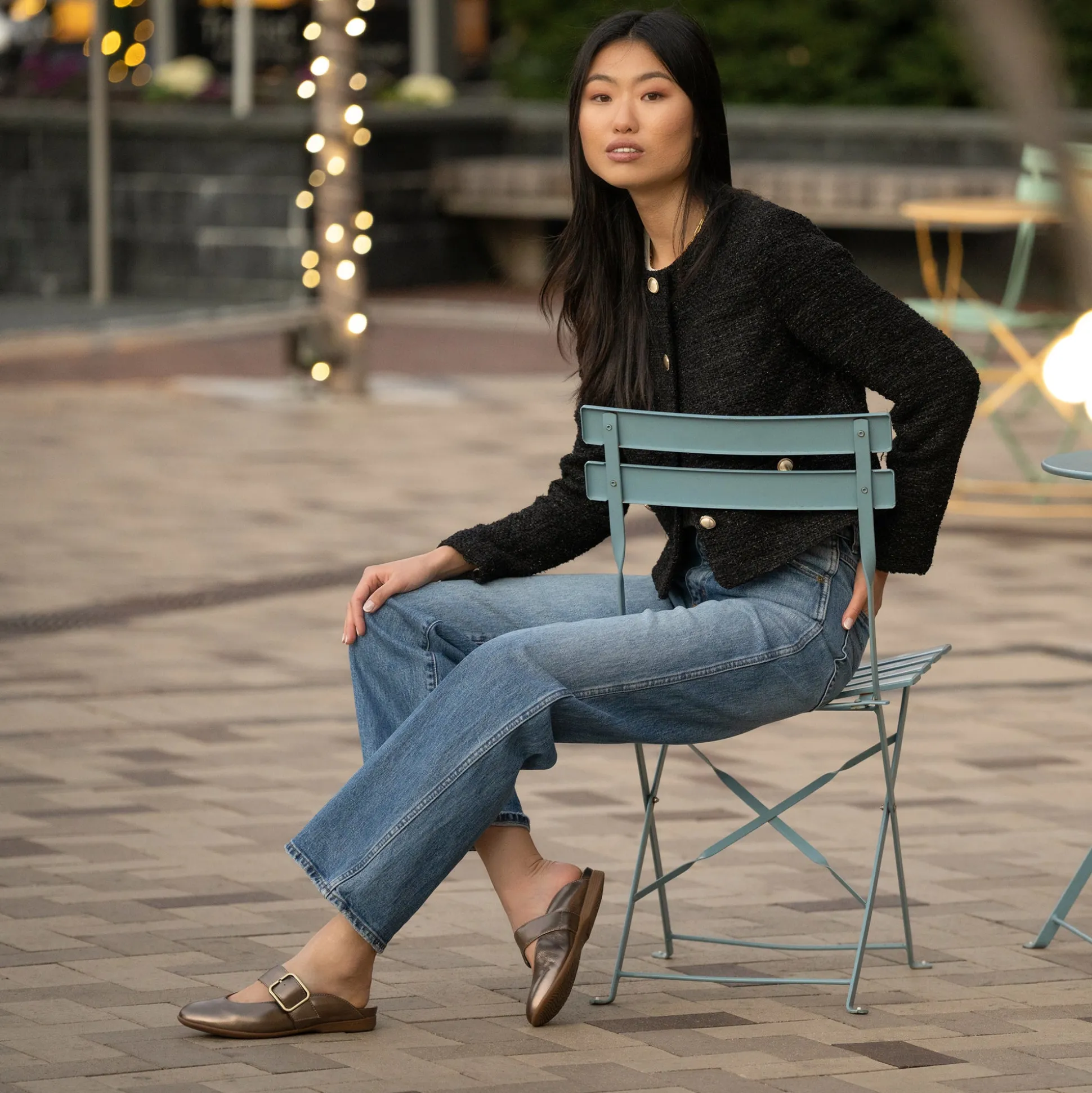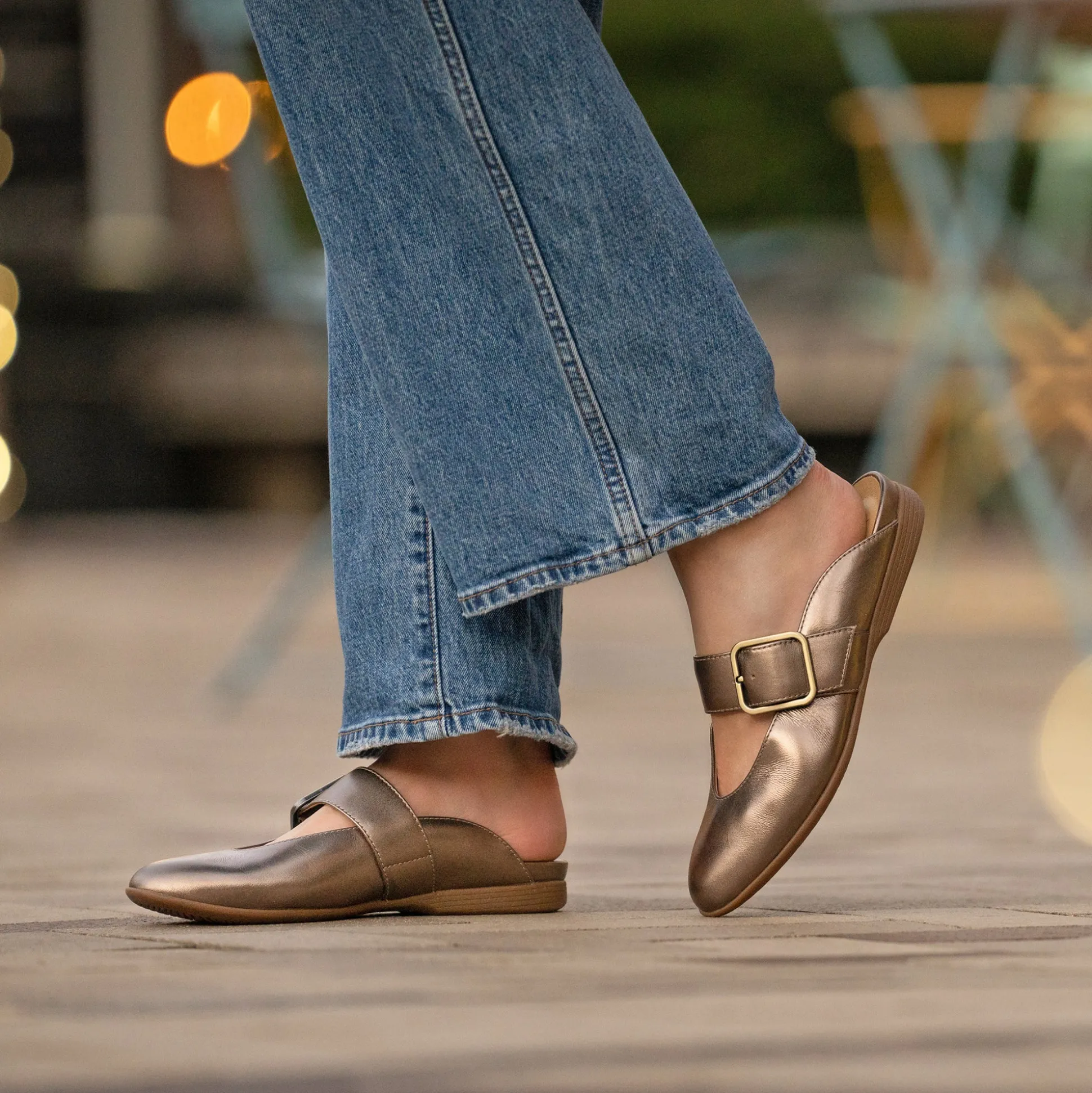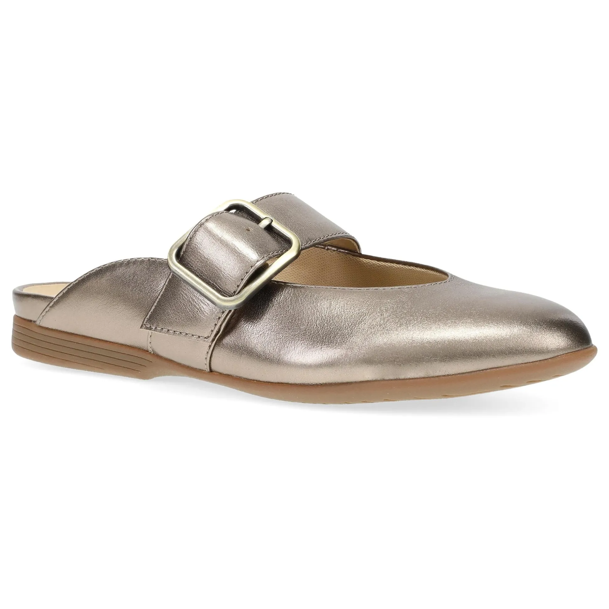 Experience unparalleled comfort and style with Lotus flats–where unique designs meet exceptional arch support for all-day ease. Featuring an on-trend oversized buckle detail, these versatile mules can be worn as slides or open back Mary Janes.