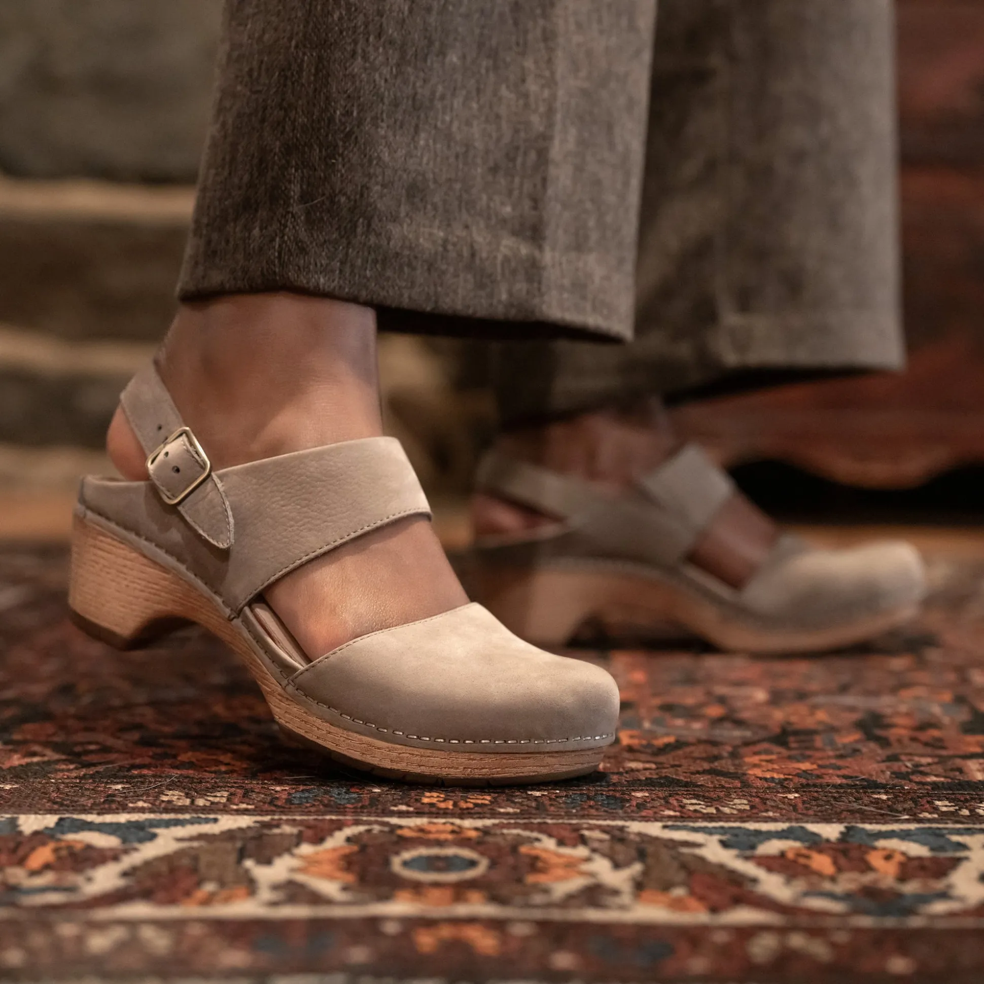 Wipe with a damp cloth to remove surface dirt. Use Dansko Nubuck and Suede Block and Brush to remove surface stains. To maintain, spray Dansko Suede and Nubuck Spray evenly but do not saturate. Let dry overnight for best results.