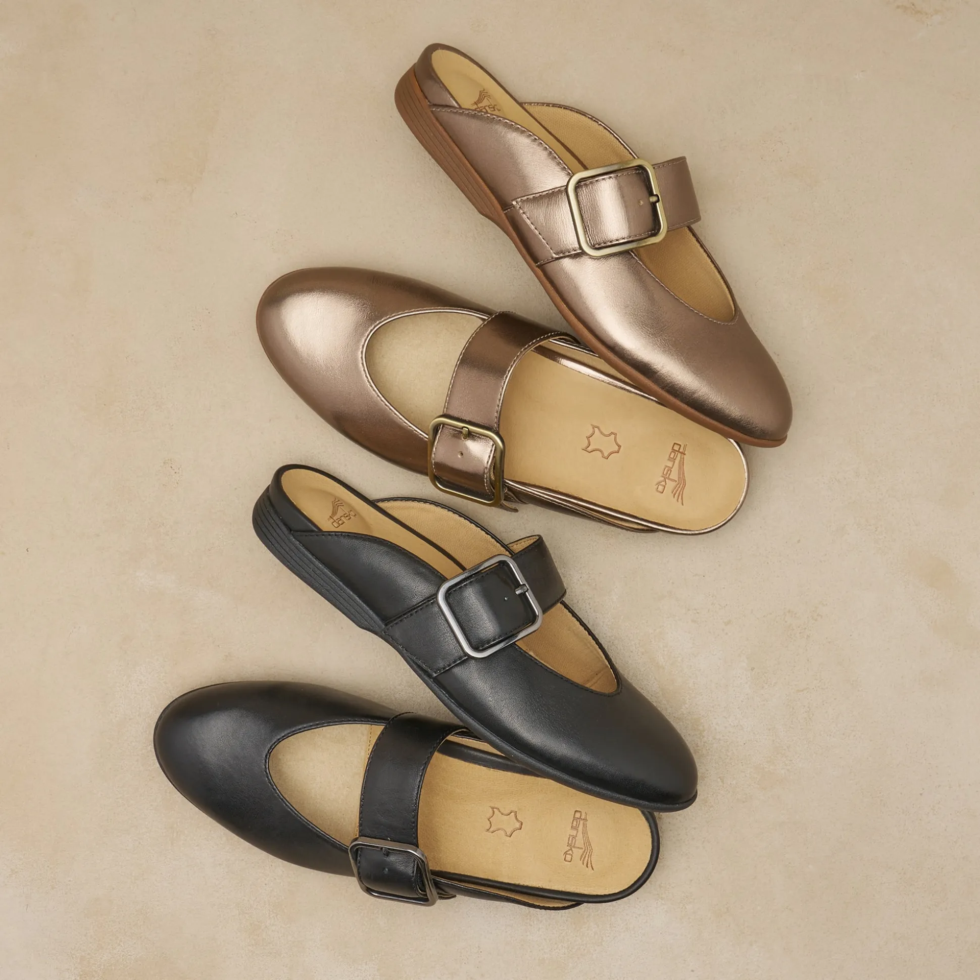 Experience unparalleled comfort and style with Lotus flats–where unique designs meet exceptional arch support for all-day ease. Featuring an on-trend oversized buckle detail, these versatile mules can be worn as slides or open back Mary Janes.