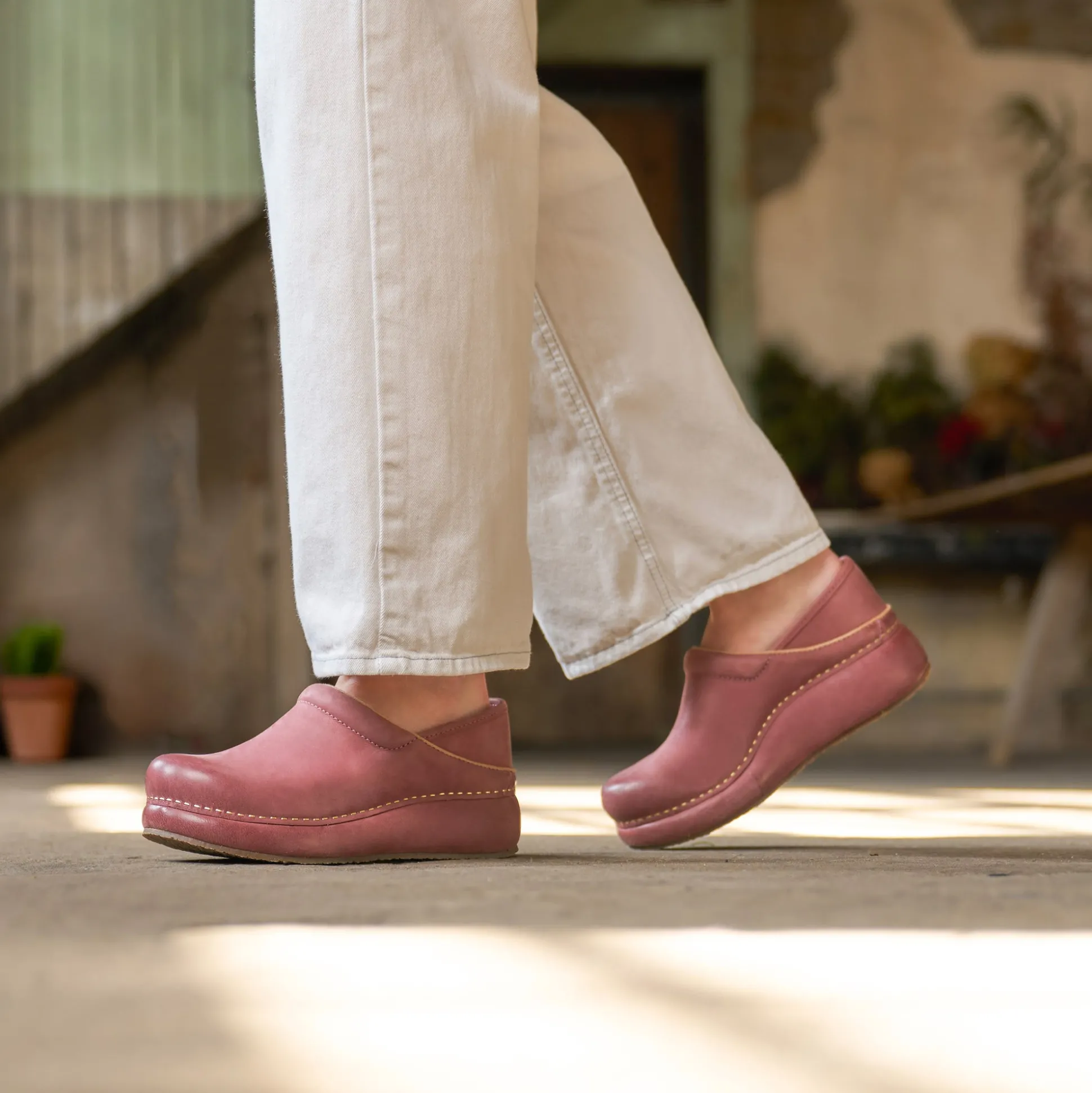 Wipe with a damp cloth to remove surface dirt. Use Dansko Nubuck and Suede Block and Brush to remove surface stains. To maintain, spray Dansko Suede and Nubuck Spray evenly but do not saturate. Let dry overnight for best results.